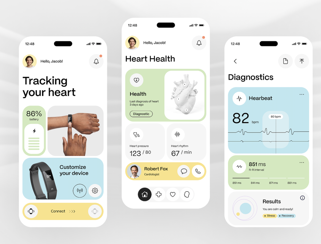 醫(yī)療健康類產(chǎn)品需要傳達一種冷靜、穩(wěn)重的氣質(zhì)。設(shè)計中應(yīng)避免過于復(fù)雜的元素和躁動的色彩,而是采用簡單的線條、低密度的布局。例如,使用簡潔的圖標和清晰的文字排版,減少視覺干擾,讓用戶在使用過程中保持冷靜與專注。這種設(shè)計風格有助于緩解用戶的焦慮情緒,增強對產(chǎn)品的信任感。