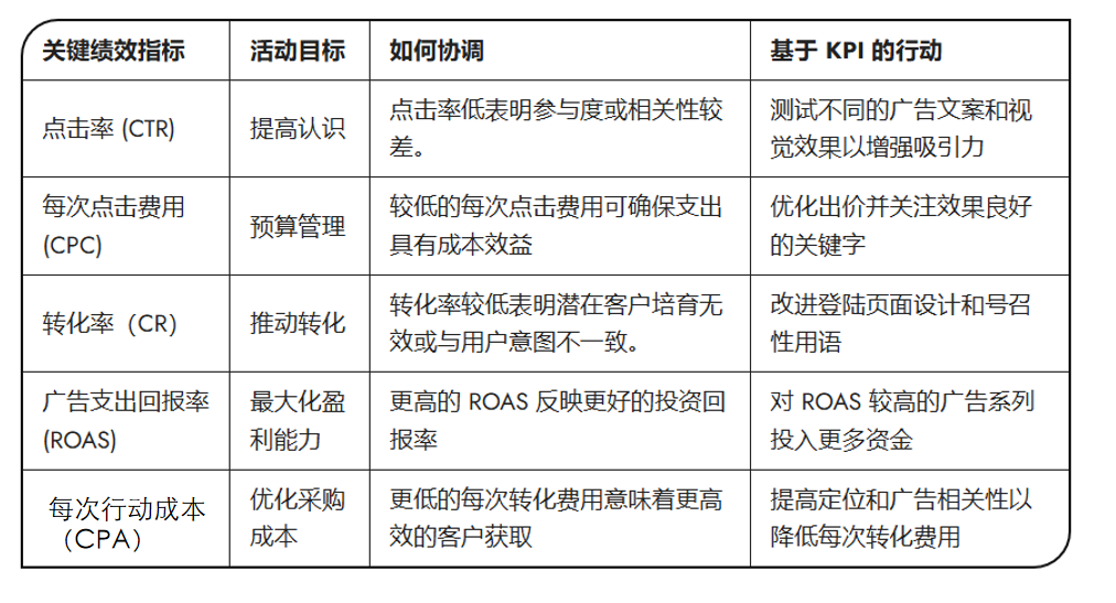 廣告系列要見(jiàn)成效,首先要選對(duì)KPI跟蹤,這要確保這些KPI跟你的目標(biāo)合拍,這樣才可以集中精力,提升效果。一旦營(yíng)銷(xiāo)活動(dòng)跟這些關(guān)鍵指標(biāo)掛上鉤,那營(yíng)銷(xiāo)的價(jià)值就一目了然了,工作也更有說(shuō)服力。