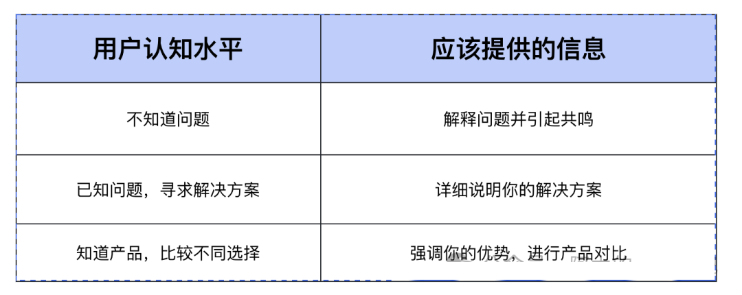不同用戶(hù)對(duì)你的產(chǎn)品有不同的了解程度。在設(shè)計(jì)著陸頁(yè)時(shí),你需要判斷大多數(shù)訪(fǎng)客的認(rèn)知水平,并根據(jù)其需求提供不同層次的信息。