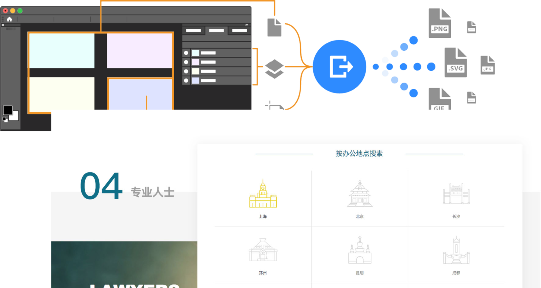 對于確定的網站風格進行導圖輸出,根據不同屏幕分辨率輸出不同的格式和大小,如圖標可以考慮 PNG、JPG 加 2x 倍或 SVG 格式,圖片進行不同尺寸輸出以適應移動化。最重要的是要保持素材資源的清晰程度。