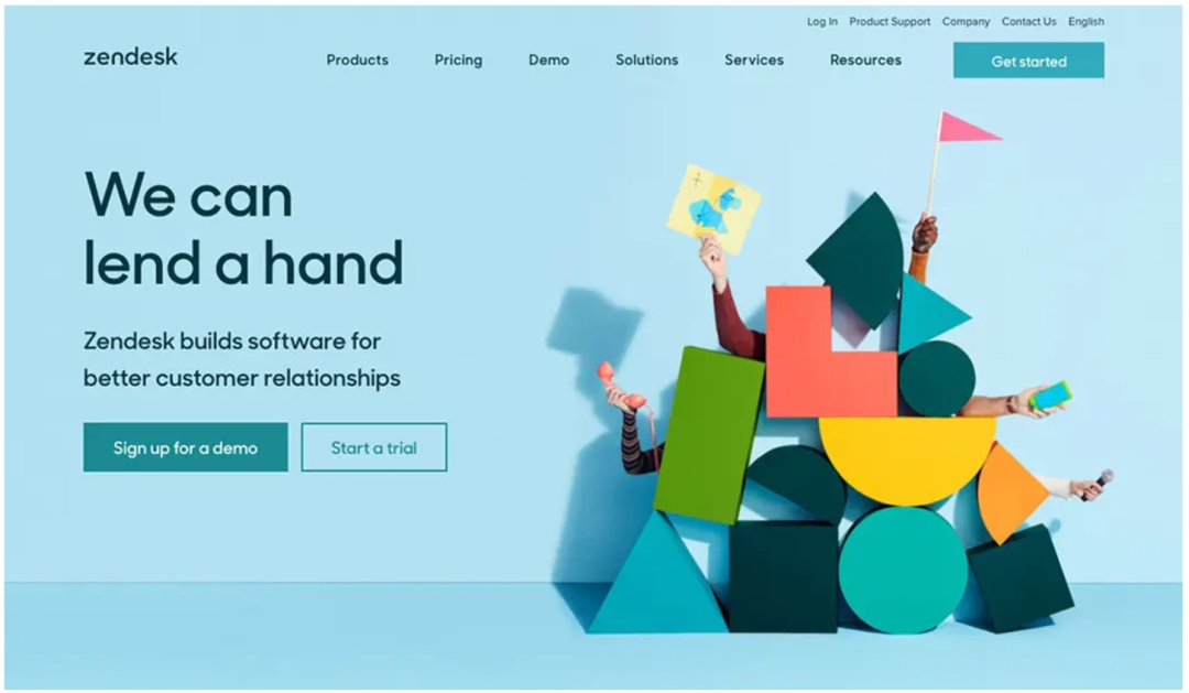 Zendesk用形象的概念圖來輔助傳達產品的價值主張——We can lend a hand。