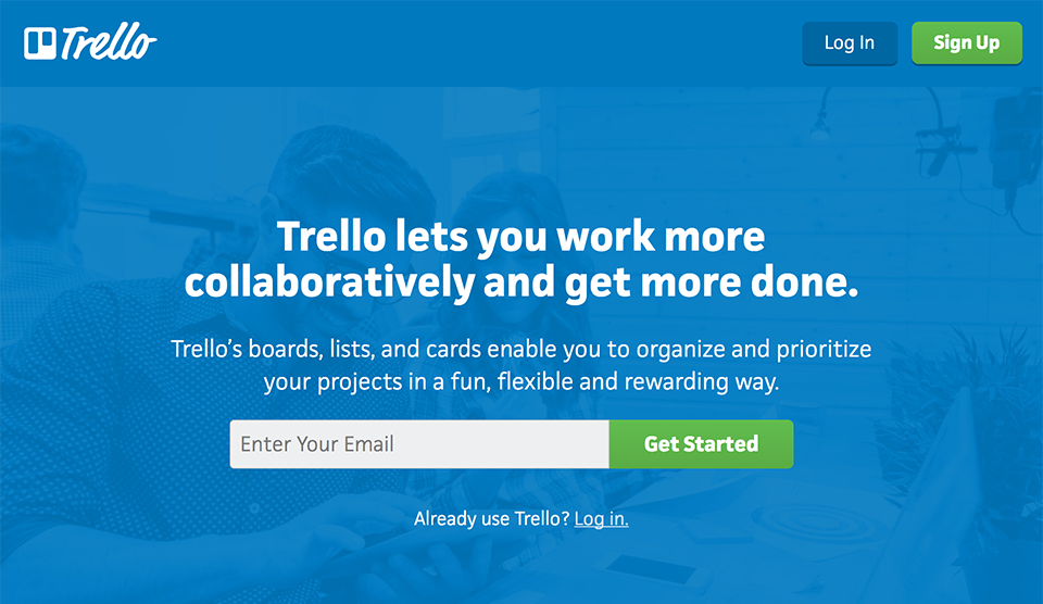 例如辦公協作應用Trelllo的官網頂部沒有導航,只保留了登陸和注冊入口。頁面的信息組織
