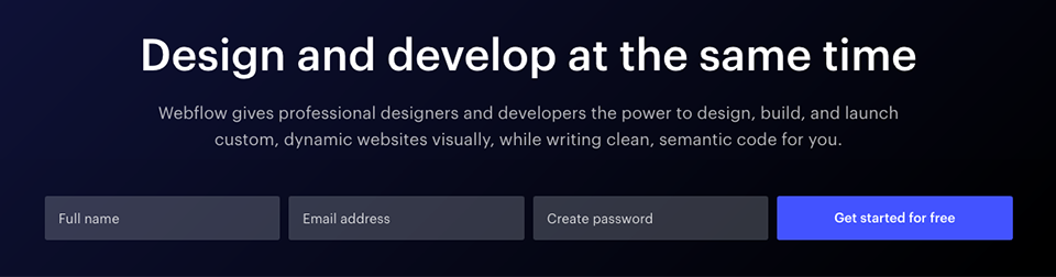 Webflow則直接把需要填寫的注冊項全列出來,這適用于注冊項在三個以內的情況: