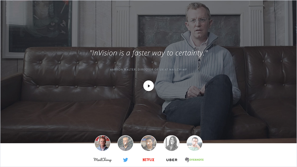 越來越多的公司已經不滿足于靜態講故事,例如Invision,他們開始使用更專業、更有說服力的采訪短片來作為客戶成功案例: