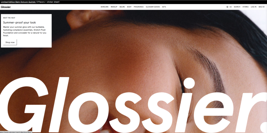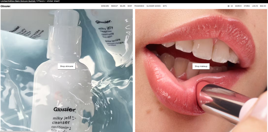 四、Glossier:簡約現代與高清大圖的視覺盛宴