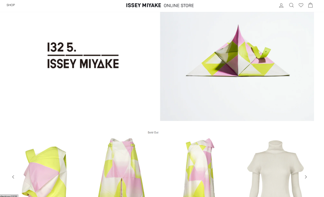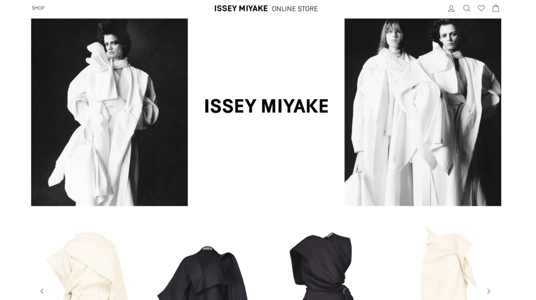 Isseymiyake以其對技術創新的追求和獨特的設計哲學而著稱。首屏的折紋設計包包視頻不僅展現了產品的獨特性,也傳遞了品牌的創新精神。作為高級時裝品牌,Isseymiyake的獨立站設計簡約大氣,以白灰色為主色調,搭配高級感十足的模特圖,完美展現了品牌的時尚性和高端定位。